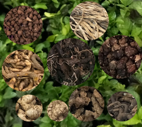 ได้แก่ เถาวัลย์ปูน แก่นเสมทะเล แก่นขี้เหล็ก แก่นแสมสาร ดอกดีปลี รากช้าพลู รากเจตมูลเพลิง เหง้าขิงแห้ง ต้นตอไส้ และสมุนไพรตัวยาอื่นๆ